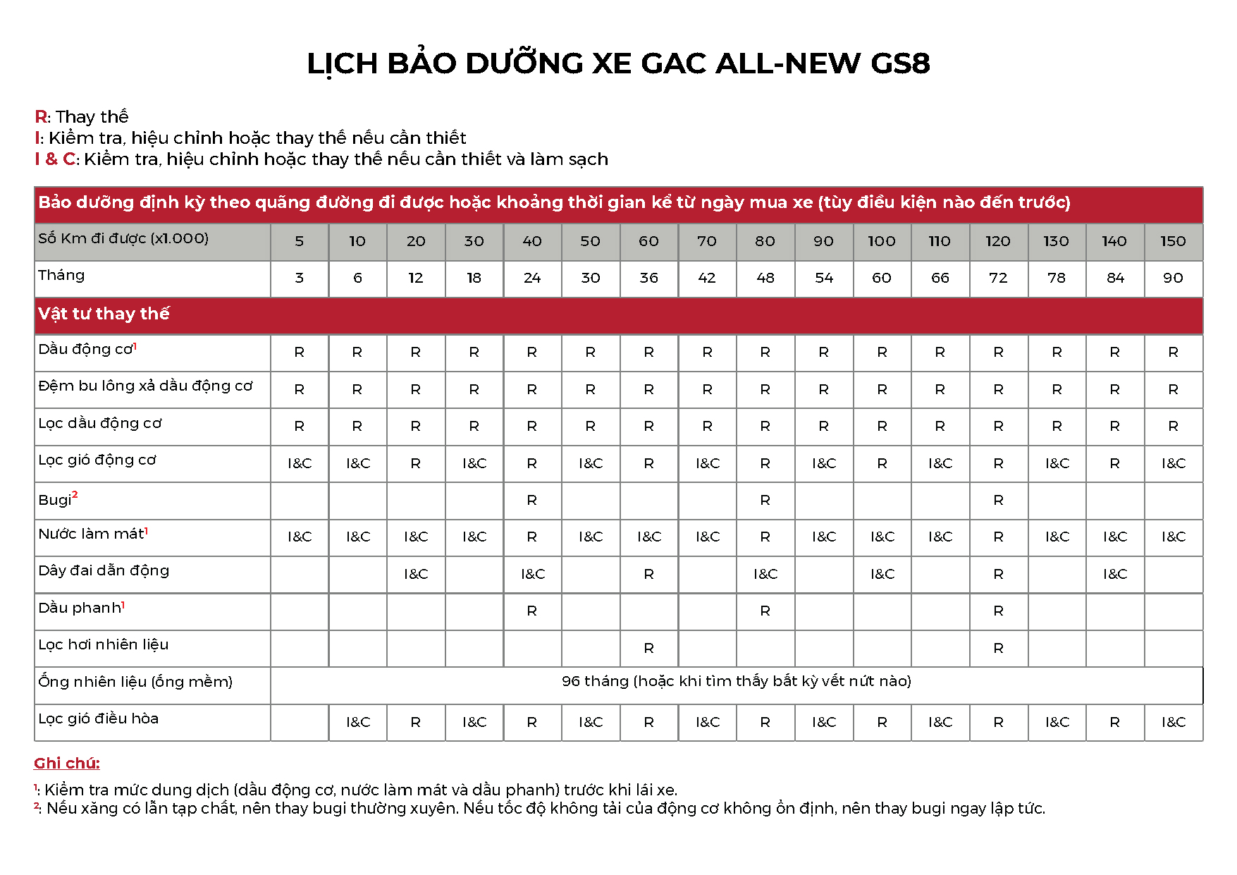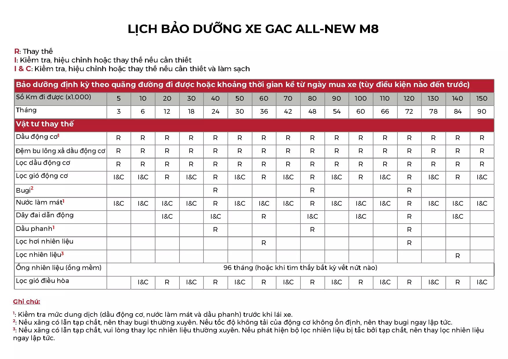 Bảo dưỡng định kỳ giúp chiếc xe của bạn luôn ở điều kiện vận hành tốt nhất và hoạt động hiệu quả. Từ đó tăng tuổi thọ của xe và giúp khách hàng luôn có một trải nghiệm hoàn hảo khi sử dụng. Do đó, khách hàng cần chủ động đưa xe đến Đại lý ủy quyền của GAC MOTOR Việt Nam để bảo dưỡng định kỳ.
