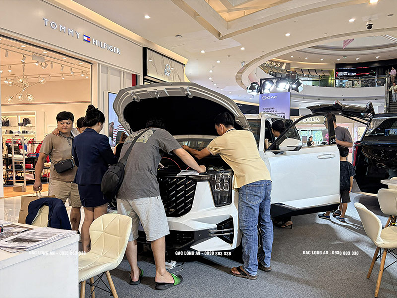 Đội ngũ nhân sự từ GAC LONG AN đã có mặt xuyên suốt sự kiện để hỗ trợ tư vấn chuyên sâu về thông số kỹ thuật, công nghệ động cơ cũng như các chính sách ưu đãi đặc quyền. Sự nhiệt tình và chuyên nghiệp của đội ngũ đã giúp khách hàng có cái nhìn chi tiết nhất về giá trị mà thương hiệu GAC mang lại.